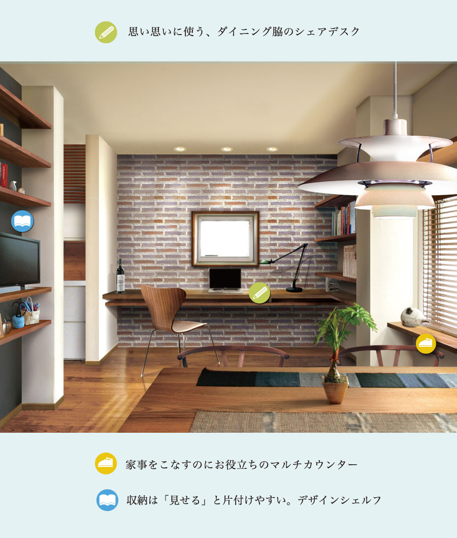 食事の準備に片付け,掃除に洗濯。毎日の家事に追われていませんか? 「HYGGE」は機能的な家事動線や、あるといいなを「暮らしやすさの種」にして蒔いてあります。